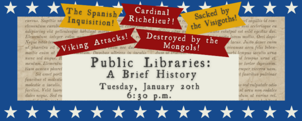 Tuesday, January 20th at 6:30 p.m. Public Libraries: A Brief History Public libraries throughout the nation support the right to vote by serving as polling