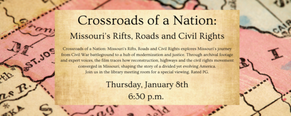 Thursday, January 8th at 6:30 p.m. Crossroads of a Nation: Missouri’s Rifts, Roads and Civil Rights a PBS Special Crossroads of a Nation: Missouri’s Rifts,