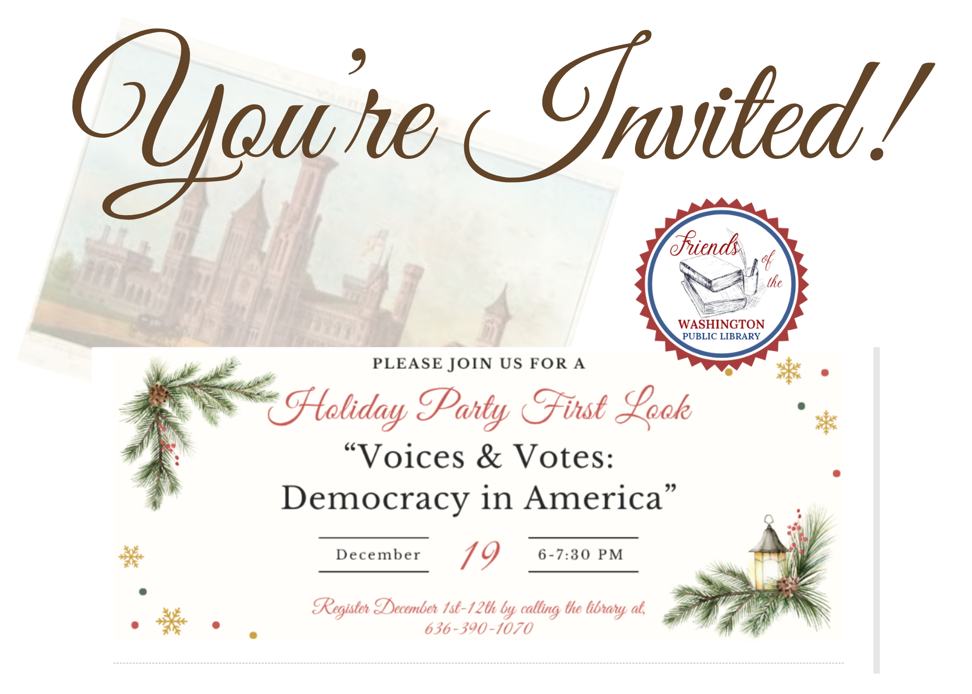 The Friends of the Washington Public Library Board meet on the first Wednesday of the month at 4:00 pm in the Main Library Conference Room, unless otherwise announced. Meetings are open to the public.